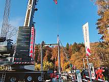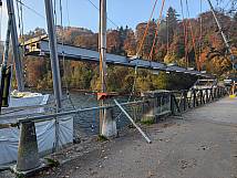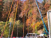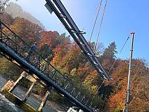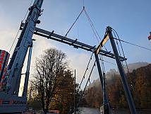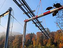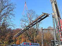 Drei Stahlelemente wurden vor Ort zur einer 60 Meter langen und 5,6 Meter breiten Brücke zusammengesetzt. Am 29. Oktober 2024 wurde die Stahlkonstruktion mit dem Pneukran eingehoben.