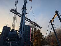 Einhängen des Stahlkörpers – Ersatzneubau Schützenfahrbrücke (Fotos und Video zvg: Kästli Bau AG, 29.10.2024)